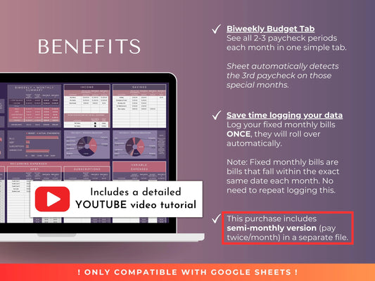 Biweekly/Fortnightly Budget Spreadsheet Planner: Income & Expense Tracker