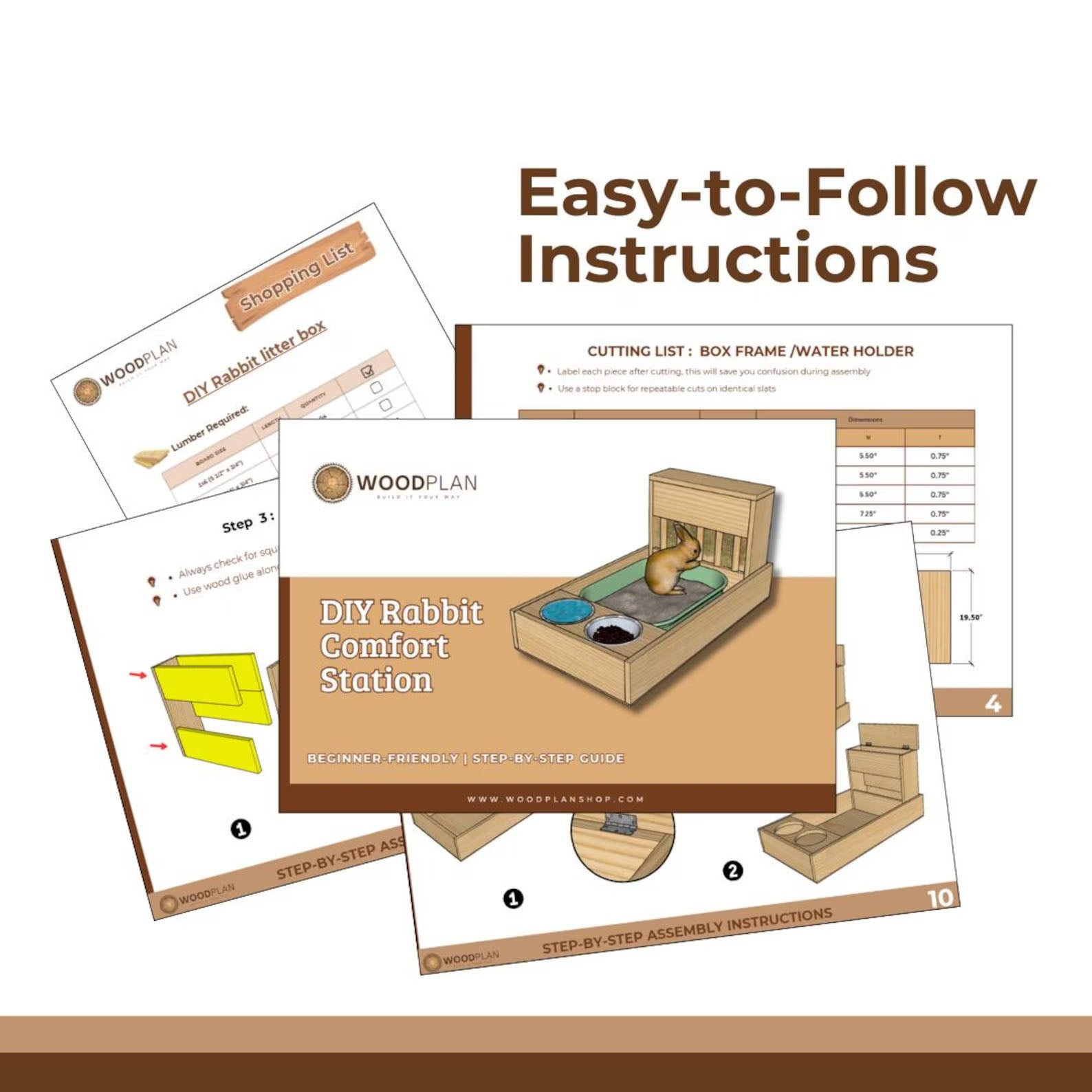 Rabbit Hutch Woodworking Plan: Litter Box, Hay Feeder & Bowls (Digital Download)
